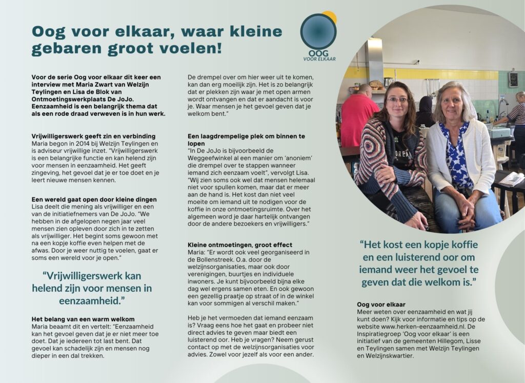 Lees hier artikel 5 van de serie “Oog voor elkaar”. Dit is een initiatief om meer bewustwording te vragen rondom eenzaamheid!